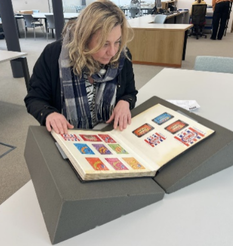 (Pictured here is our MD Cheryl, scolling through the archives! On this visit we found some really fun and interesting bottling labels from the 80s.)
